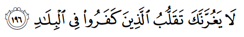 Janganlah sekali-kali kamu terperdaya oleh kebebasan orang-orang kafir bergerak di dalam negeri."Itu hanyalah kesenangan sementara, kemudian tempat tinggal mereka ialah Jahanam; dan Jahanam itu adalah tempat yang seburuk-buruknya.